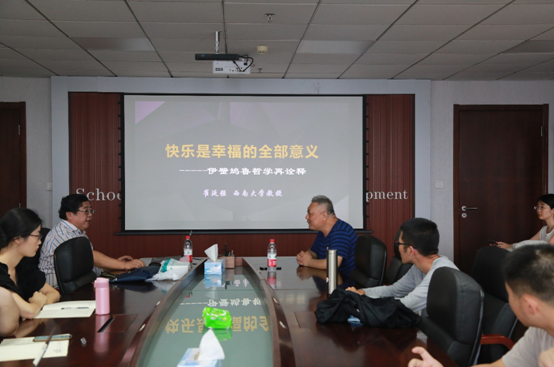 ,作题为“快乐是幸福的全部意义——伊壁鸠鲁哲学再诠释”的报告,山东大学傅永军教授主持。
