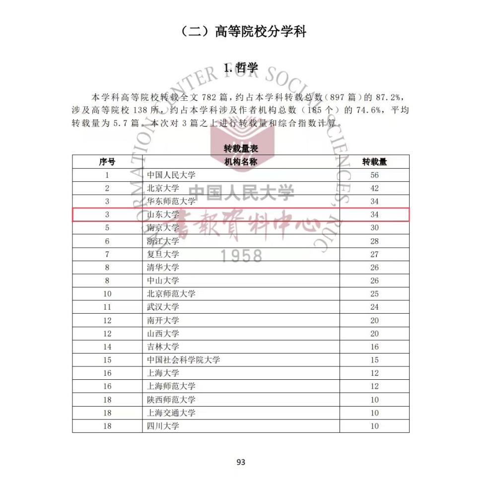 的转载量和综合指数位列第4名,这些成绩展示了山东大学在哲学学科领域显著的学术影响力和扎实的研究水平。