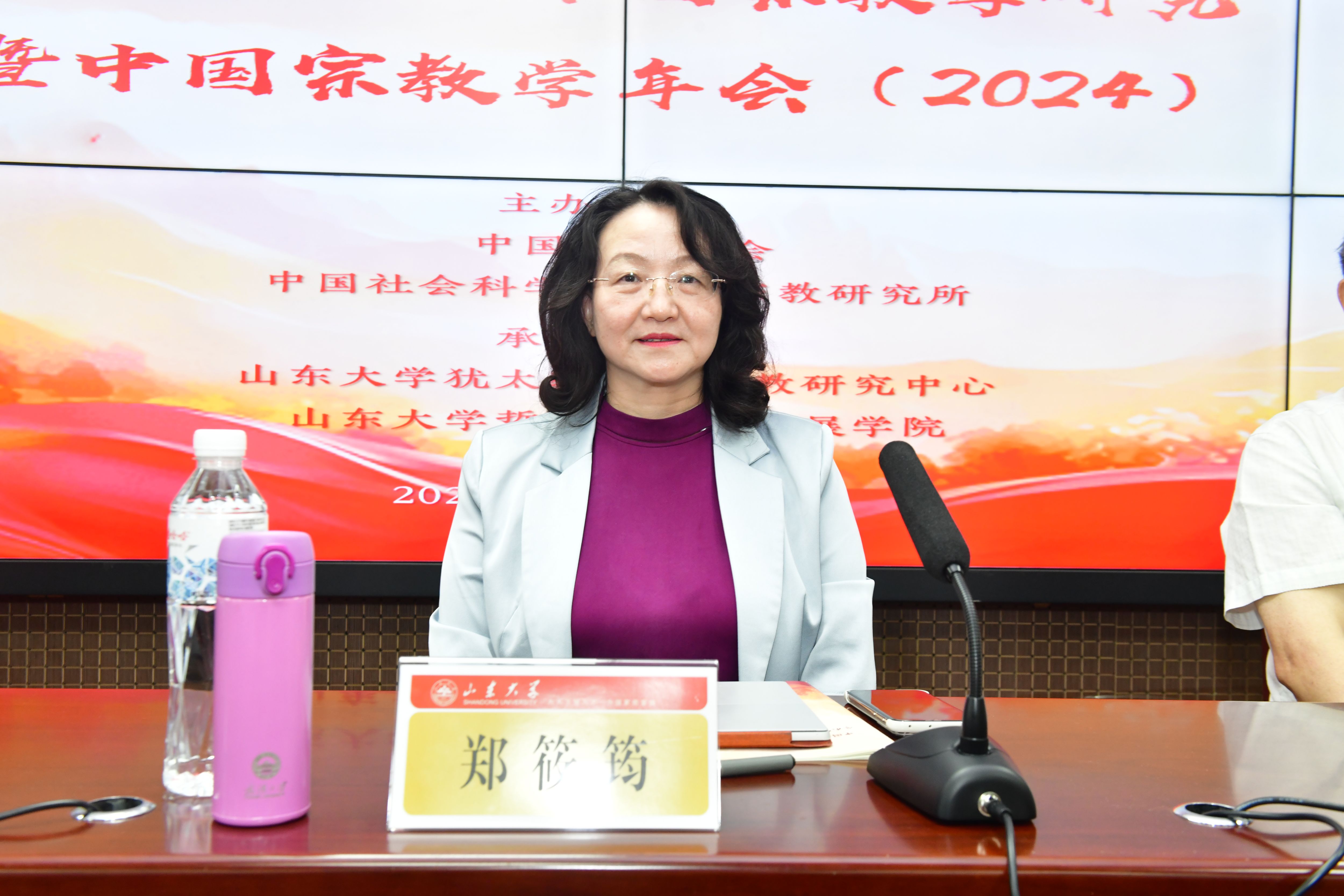 主旨发言环节由中国宗教学会副会长、山东大学讲席教授、山东大学犹太教与跨宗教研究中心主任傅有德教授主持。郑筱筠以“在中国式现代化进程中,系统推进我国宗教中国化的几点思考”为题,围绕深入学习习近平总书记关于做好新时代党的统战工作重要思想、全面完整准确落实和阐释习近平总书记关于宗教工作的重要论述,强调在中国式现代化进程中,要系统推进我国宗教中国化,以问题意识为导向,加强社会调查研究,防范化解宗教领域风险隐患,系统加强宗教事务治理法治化水平。