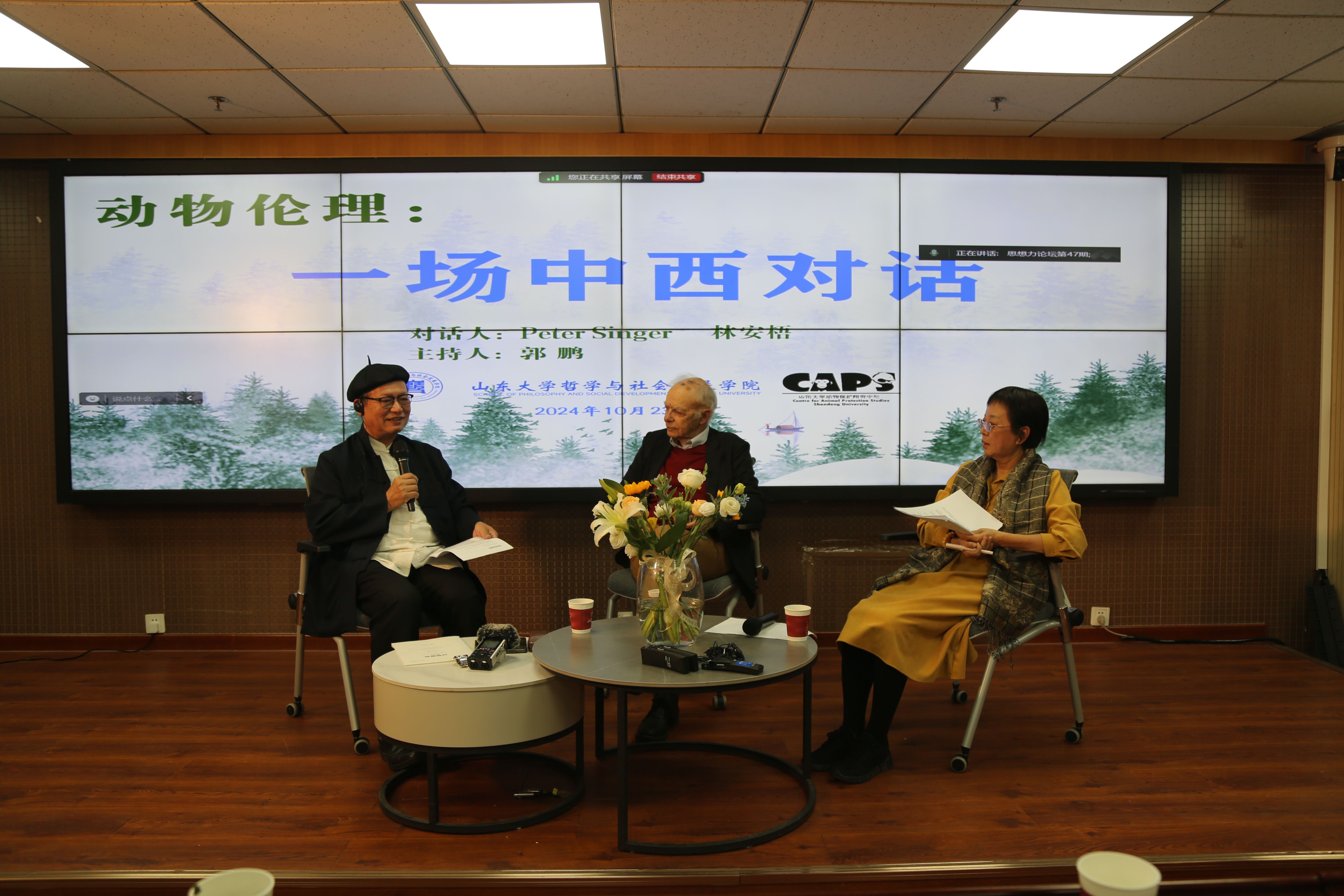 2024年10月23日,世界著名哲学家彼得·辛格教授到访bet007足球比分(中国)官方网站 ,作为 “思想力论坛”第47期特邀嘉宾,与当代新儒家重要代表林安梧教授作了主题为“动物伦理:一场中西对话”的报告,由bet007足球比分 郭鹏副教授主持。报告在知新楼A1521学源报告厅举办,现场座无虚席,气氛热烈。