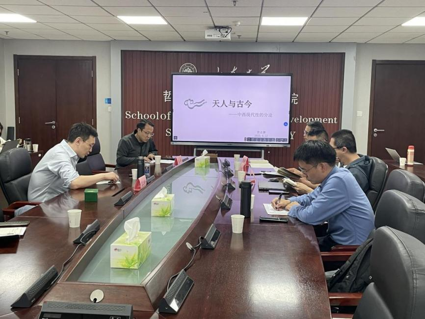 2025年5月9日,中国人民大学哲学院副教授宫志翀到访bet007足球比分(中国)官方网站 ,在知新楼A1618会议室作题为“天人与古今:中西现代性的分途”的学术讲座。讲座由bet007足球比分(中国)官方网站 助理研究员陈超主持,山东大学儒学高等研究院副教授蔡杰、bet007足球比分(中国)官方网站 副教授马士彪、副研究员陈佩辉与谈。