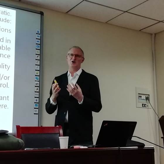 吴童立副教授主持报告会。讲座中,Smith教授讨论了我们如何从理性的规范性视角,尤其是我们如何从一种特殊的理性的视角,即道德的视角去对我们的行为进行评判。Smith教授认为理性的视角不同于交通规则,一国的法律,甚至联合国人权宣言,是一种普遍的,没有特殊性的规范性视角。也就是说他可以仅仅依靠我们作为理性主体这一事实而来批判我们的行为。理性的主体即具有获取关于世界的知识以及实现自身欲望能力的主体。Smith在讲座中也提出理性的观点和道德的观点之间的可能关系。他通过建立一个在模态上强健的(modally robust)理想的理性主体的概念,推导出一系列可以用来批评我们内在欲望的标准,包括不干扰任何主体获取知识和实现欲望的能力以及帮助其他主体获得和维持获取知识和实现欲望的能力,这样的符合我们常识的道德标准。讲座后的问答环节,大家就这一问题作出了热烈的讨论。随后,Smith教授又与哲学院的老师进行了一场教师座谈,进一步深入的讨论了他在讲座上所提出的观点。