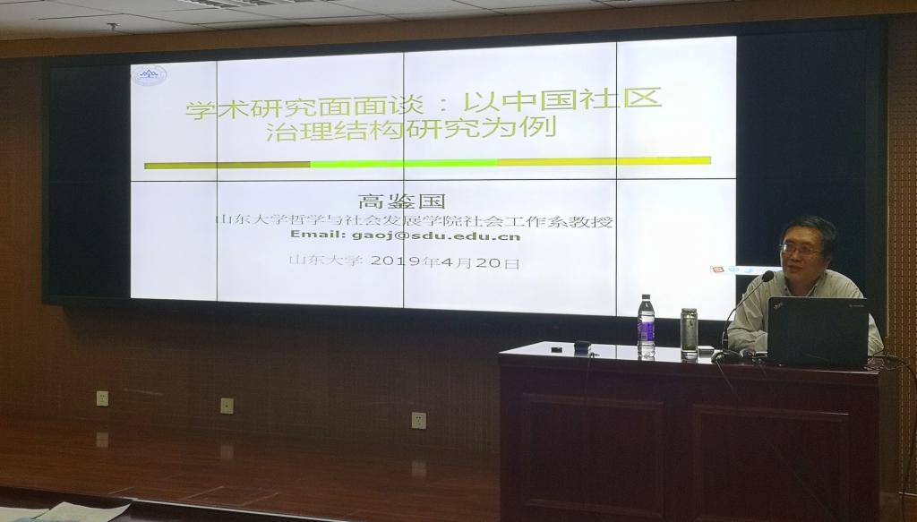 社会工作系主任、博士生导师高鉴国教授以“学术研究面面观—以社区治理结构研究为例”为题做了精彩讲座。