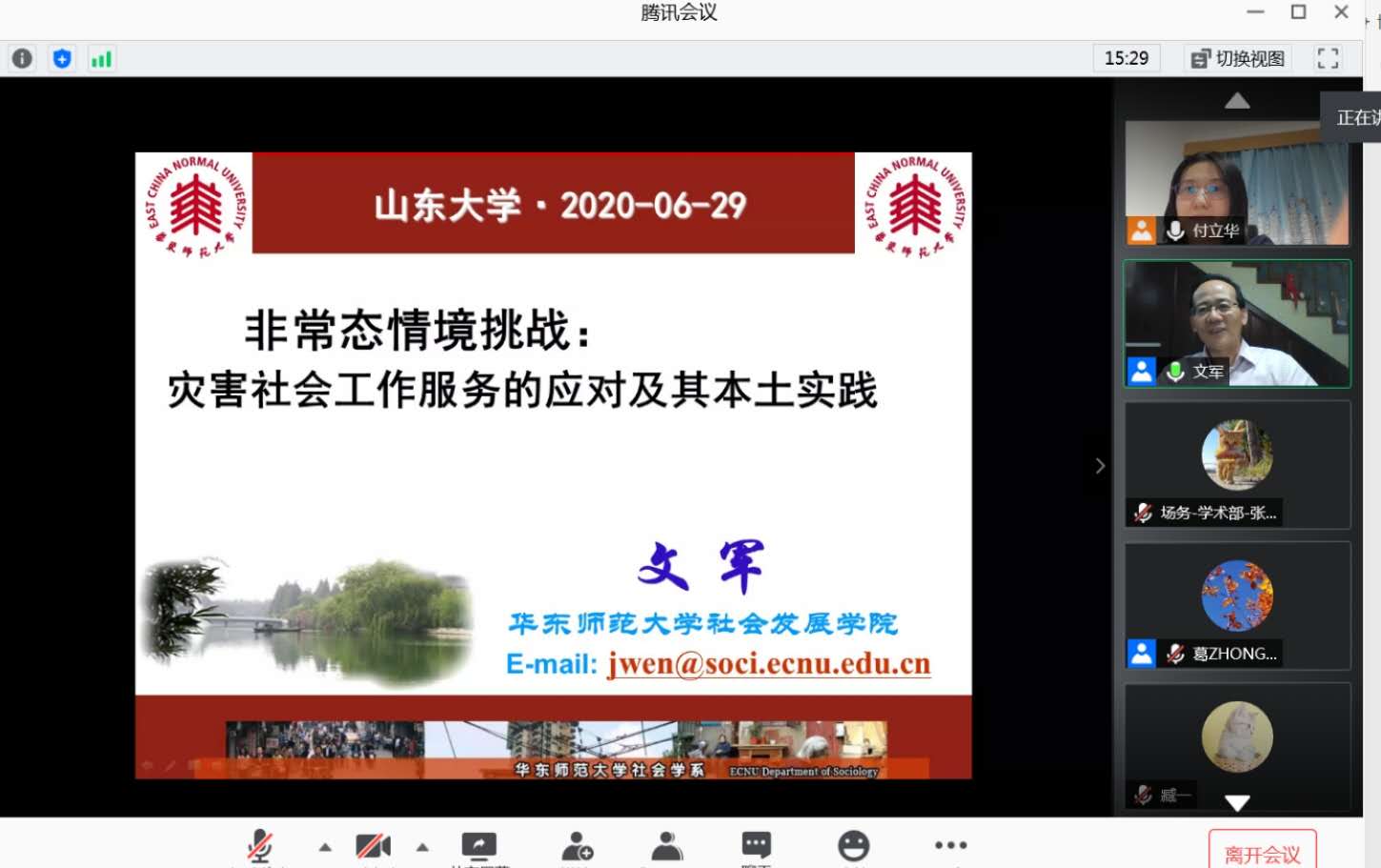 社会学系主任林聚任、社会工作系主任葛忠明、社会工作系任丽新等专家学者与文军教授在线上进行了热烈的互动和讨论,文教授也认真解答了同学们的问题。