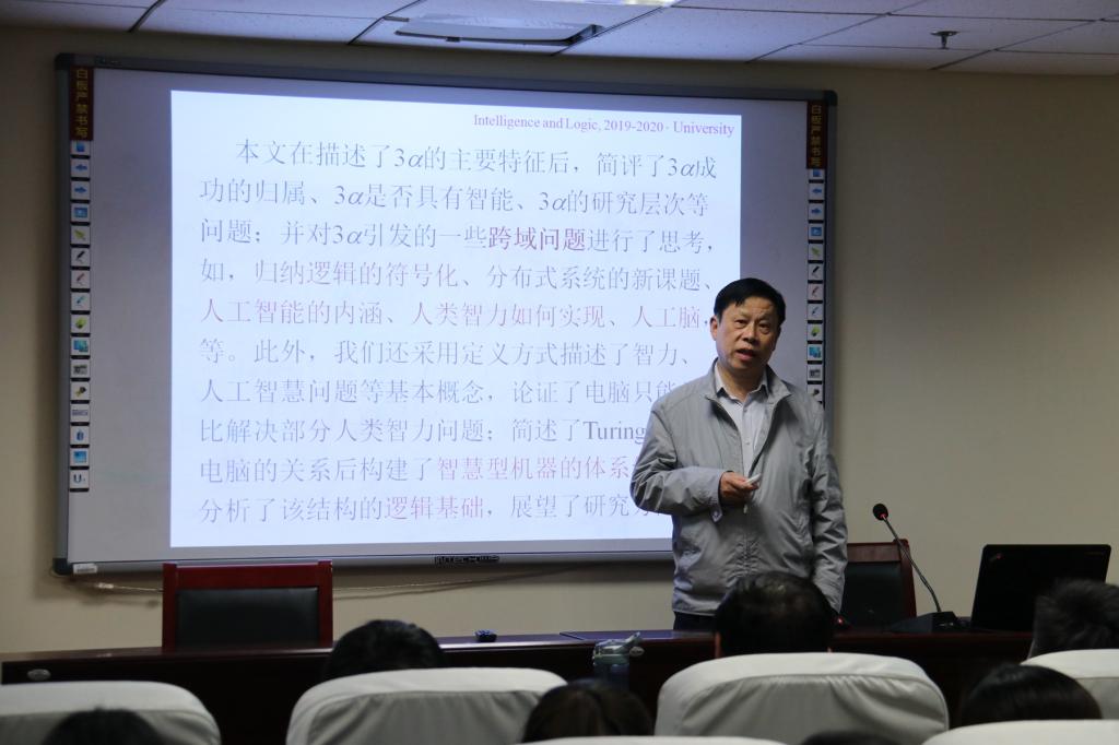 随后,洪龙教授讲述了由3α引发的一些跨域问题思考。首先,符号演绎或联结机制各有所长,应取长补短;其次,归纳逻辑的符号化可能改善深度学习的性能,并有益于各个学科的基础研究;第三,大数据是一个环境,AI研究是跨学科的;第四,AI需要先进的计算机结构,而人类智力未必都能由计算实现,人们不能构造完整的人脑;第五,基于Turing机的三种智能机模型及智能机结构问题需要探索;第六,非经典逻辑在AI的研究与发展中大有作为。