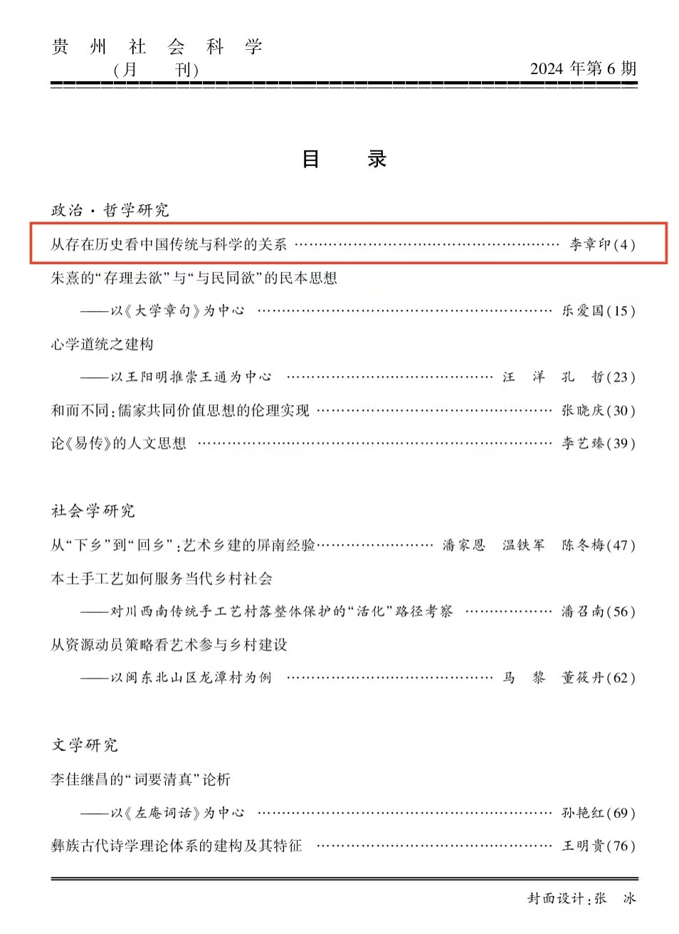 李章印教授在《贵州社会科学》2024年第6期上发表了题为《从存在历史看中国传统与科学的关系》的高质量论文。