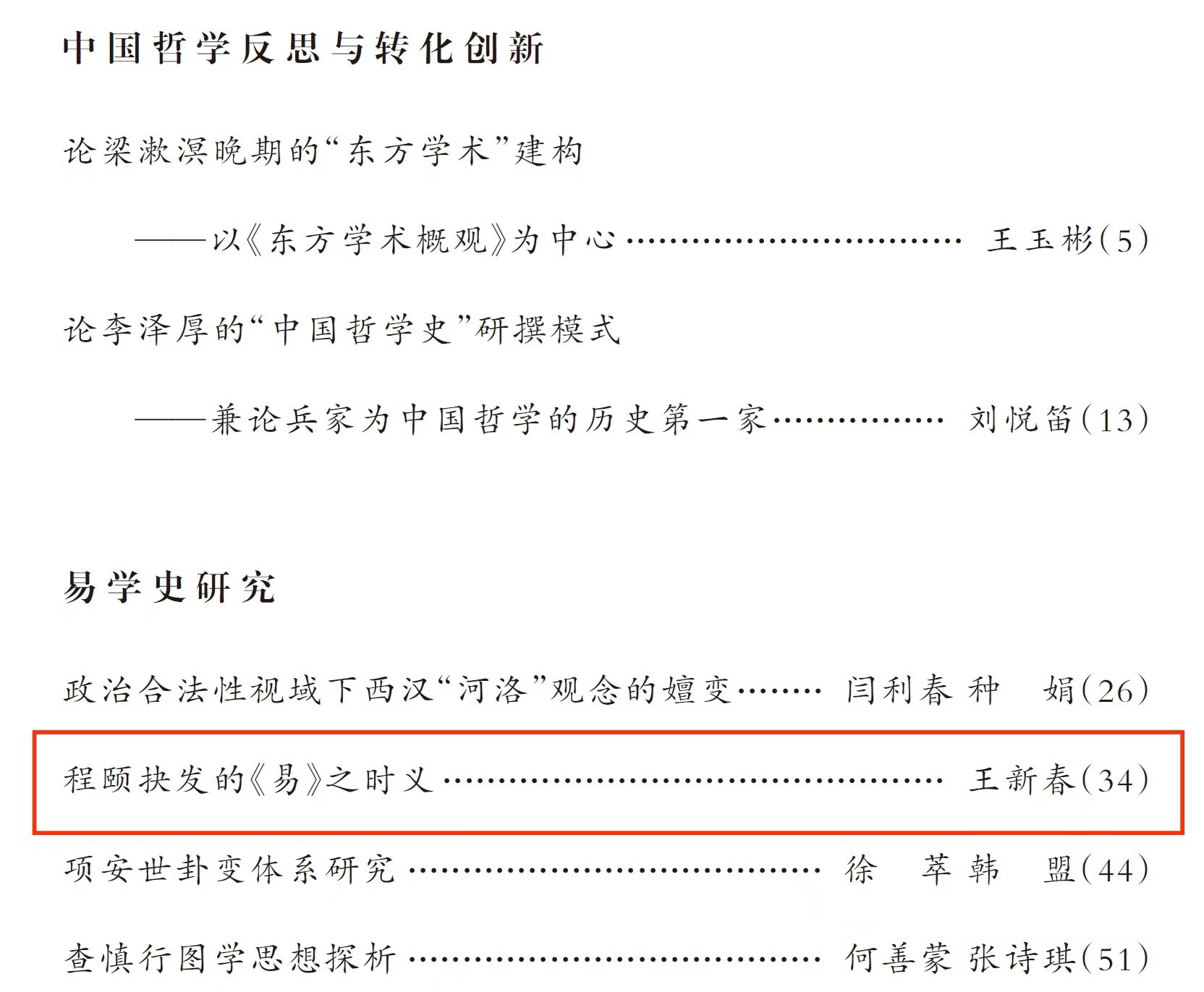 王新春教授在《周易研究》2024年第5期上发表了题为《程颐抉发的<易>之时义》的高质量论文。