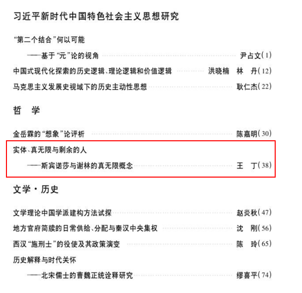 王丁教授在《甘肃社会科学》2024年第4期上发表了题为《实体、真无限与剩余的人——斯宾诺莎与谢林的真无限概念》的高质量论文。