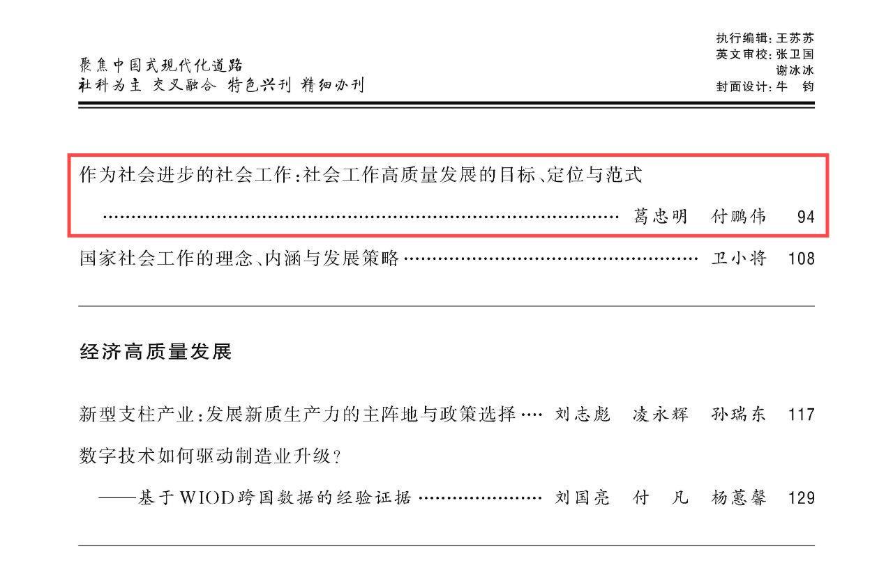 近日,bet007足球比分(中国)官方网站 葛忠明教授与其博士研究生付鹏伟共同在《山东大学学报(哲学社会科学版)》2024年第6期上发表了题为《作为社会进步的社会工作:社会工作高质量发展的目标、定位与范式》的高质量论文。