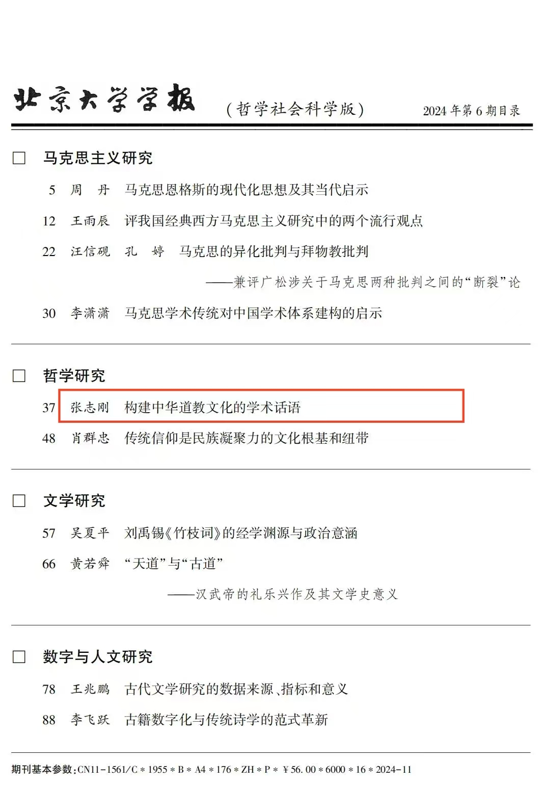 近日,山东大学犹太教与跨宗教研究中心张志刚教授在《北京大学学报(哲学社会科学版)》2024年第6期上发表了题为《构建中华道教文化的学术话语》的高质量论文。