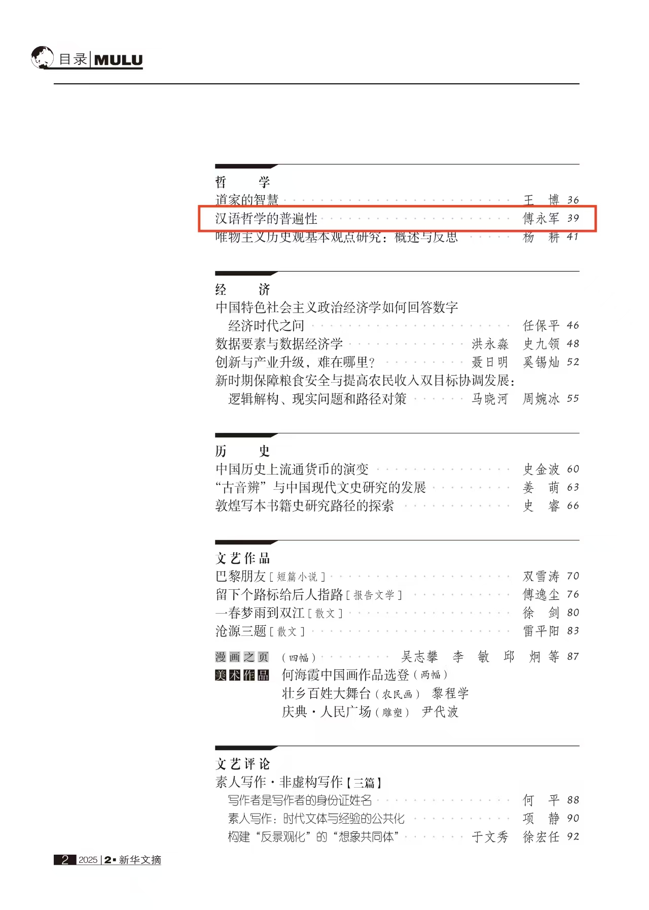 暨中国阐释学研究中心傅永军教授的题为《汉语哲学的普遍性》的高质量论文,原文发表于《光明日报》2024年09月30日15版。