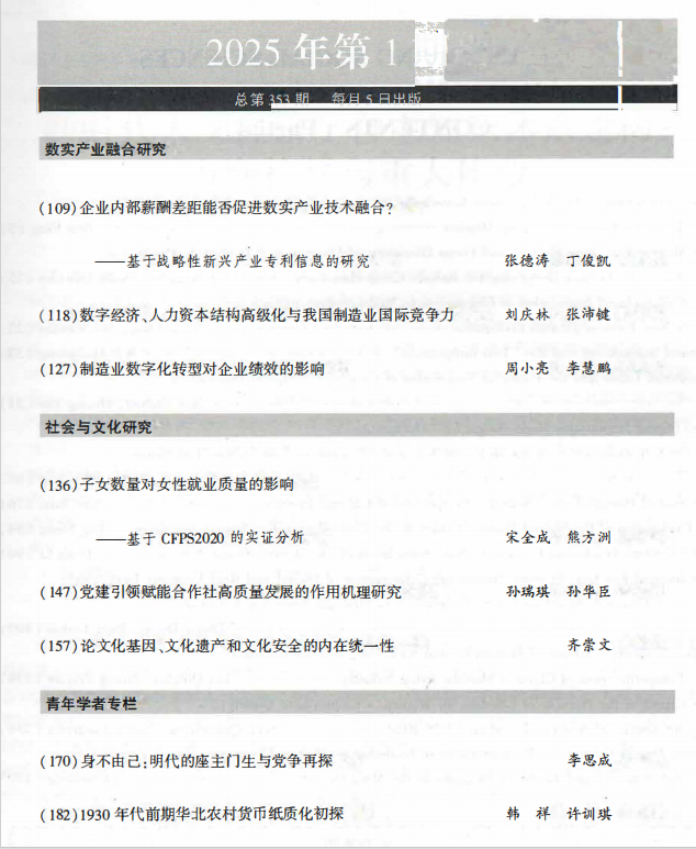 宋全成教授在《山东社会科学》2025年第1期上发表了题为《子女数量对女性就业质量的影响——基于CFPS2020的实证分析》的高质量论文。