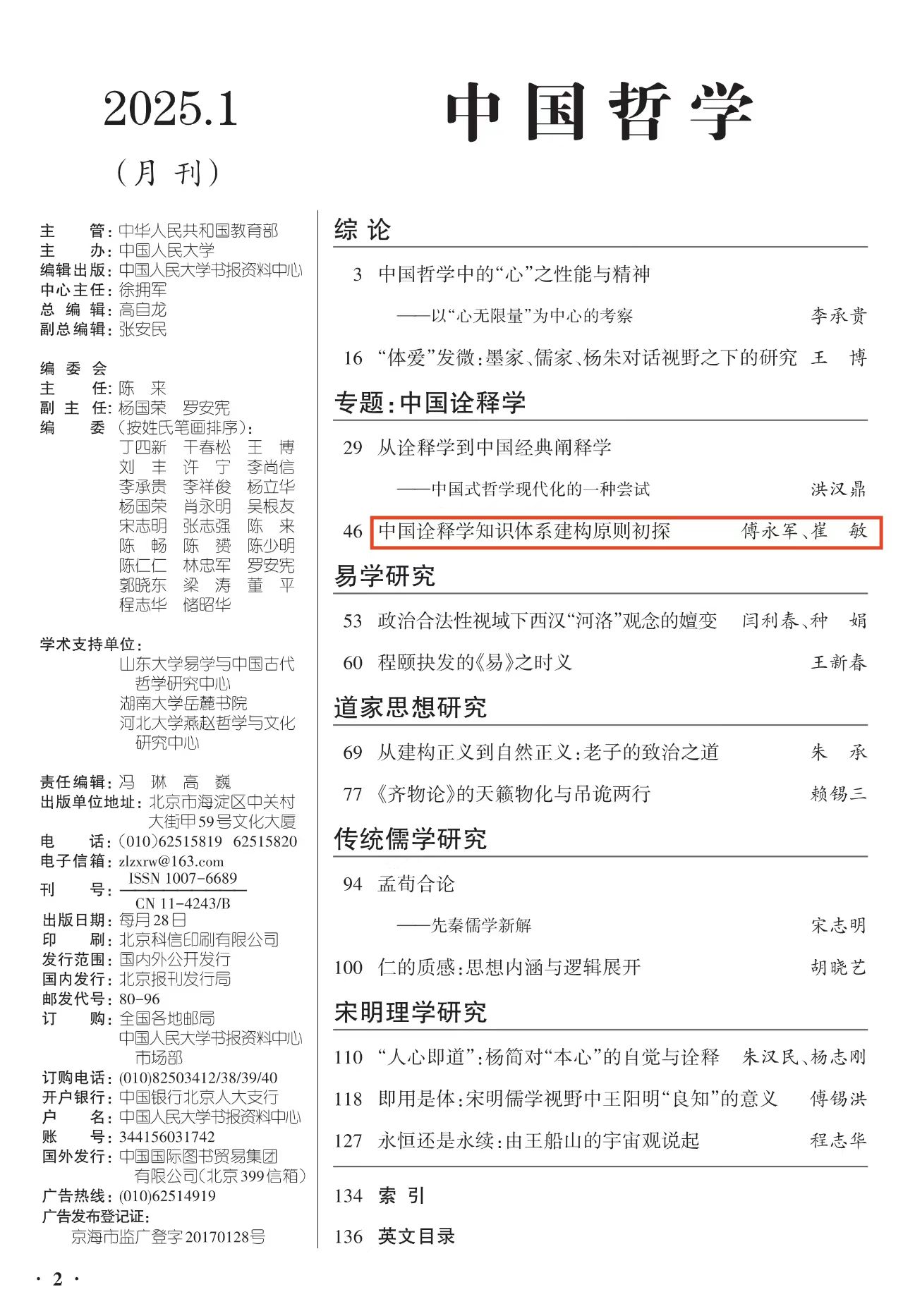 暨中国阐释学研究中心傅永军教授与其博士研究生崔敏共同发表的题为《中国诠释学知识体系建构原则初探》的高质量论文,该文原载于《天津社会科学》2024年第4期。