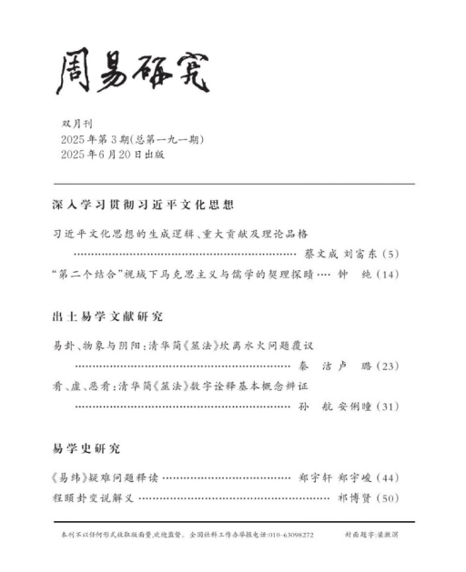 博士研究生郑宇轩和北京中医药大学本科生郑宇峻共同在《周易研究》2025年第3期上发表了题为《<易纬>疑难问题释读》的高质量论文。