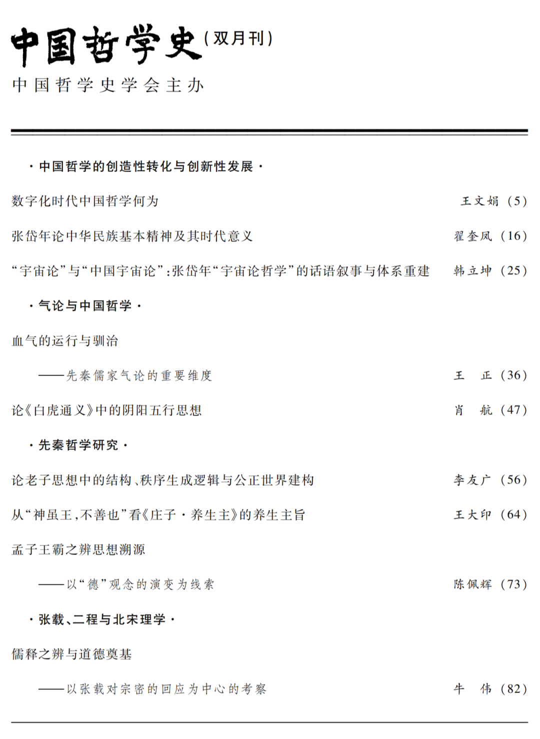 陈佩辉副研究员在《中国哲学史》2025年第5期发表了题为《孟子王霸之辨思想渊源-以“德”观念的演变为线索》的高质量论文。