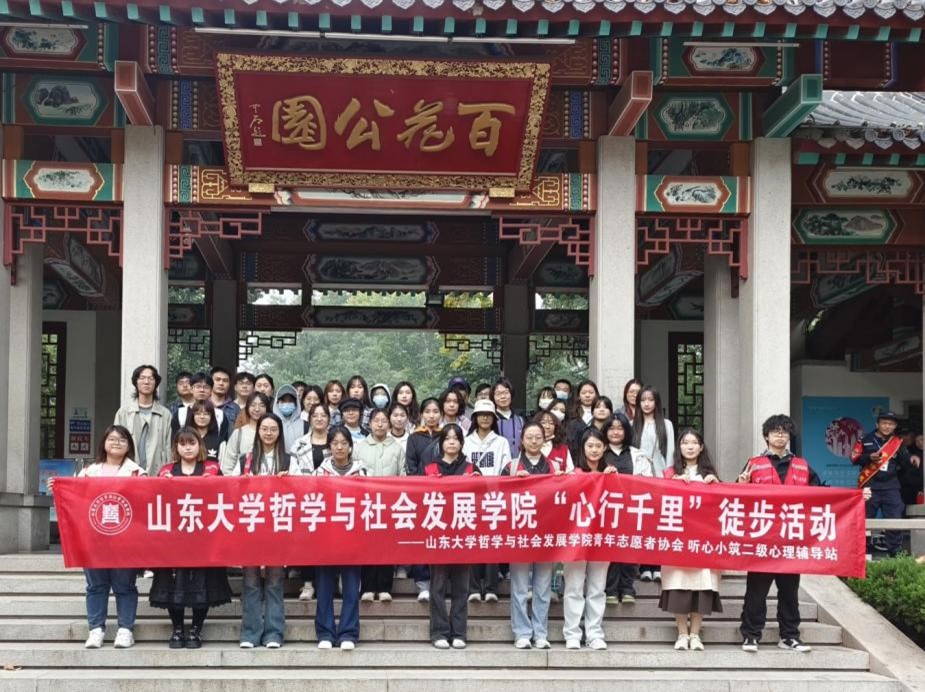 青年志愿者协会联合听心小筑二级心理辅导站于10月27日下午在济南市历城区百花公园举行“心行千里,徒步送秋”活动。