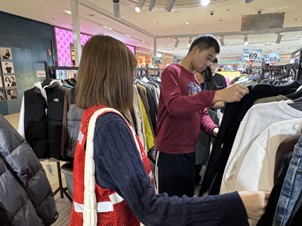 包括服装区、收银台及休息区;同时,他们也耐心说明了购物的基本流程,详细讲解了从商品选择到付款的每一个环节,确保心智障碍者对购物流程不再感到陌生。