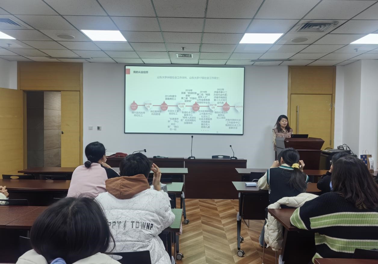 学生科学技术协会协办,特邀拥有13年实务服务经历并荣获2014年度“中国最美社工”荣誉的山大校友张海丽女士前来分享。