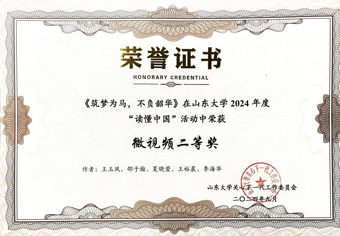 本年度,百名学生获评国家奖学金、校级特长奖、优秀学生奖、学业奖、社会奖学金等,1名博士研究生获得山东大学校长奖,1名硕士研究生获得山东高速奖学金,1名硕士研究生获得2024年度广州泰和医学人文研究教育基金资助,2名硕士研究生获得山东大学专业实践优秀研究生称号,学院获评专业实践优秀组织单位, 4名本科生完成远大基金科研项目结项,学风建设成果卓然。