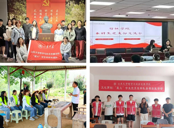 组织筹建“星火”党员先锋队,并常态化开展系列活动,一年来,哲社“星火”人开展实地参观实践活动四次,先后于淄博焦裕禄纪念馆、济南战役纪念馆,山东大学博物馆进行参观交流学习;在暑期“茶脉传承·文化两创”社会实践活动中,学生党员先锋队赴淄博、青岛、杭州、贵州、云南五大特色茶区进行实践活动,脚踏实地,将青春之诗谱写在祖国大地;首创“山东大学哲学社会科学校友访谈录”校友口述史项目,与近百位校友取得联系,整理近万字访谈记录,发挥榜样号召引领作用,以朋辈赤诚真心指点前路迷津;学院星火硕博宣讲团以“凝聚青春力量,展现青年担当”和“赓续红色血脉,传承革命精神”为主题开展理论宣讲,先后深入班级团支部、学生党支部和周边社区开展理论宣讲市十余场次,用青春之声传递时代新风。