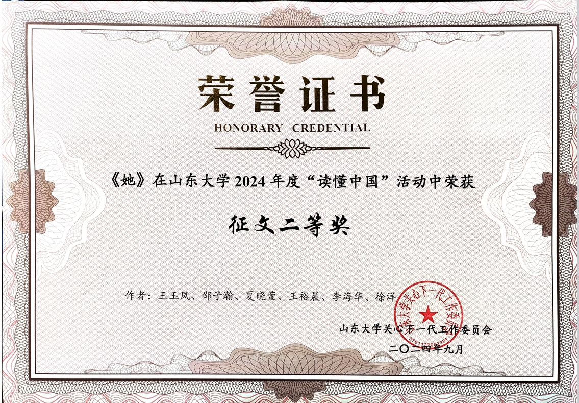 学生在“读懂中国”活动中获奖,其中征文作品《她》获得教育部关工委表彰