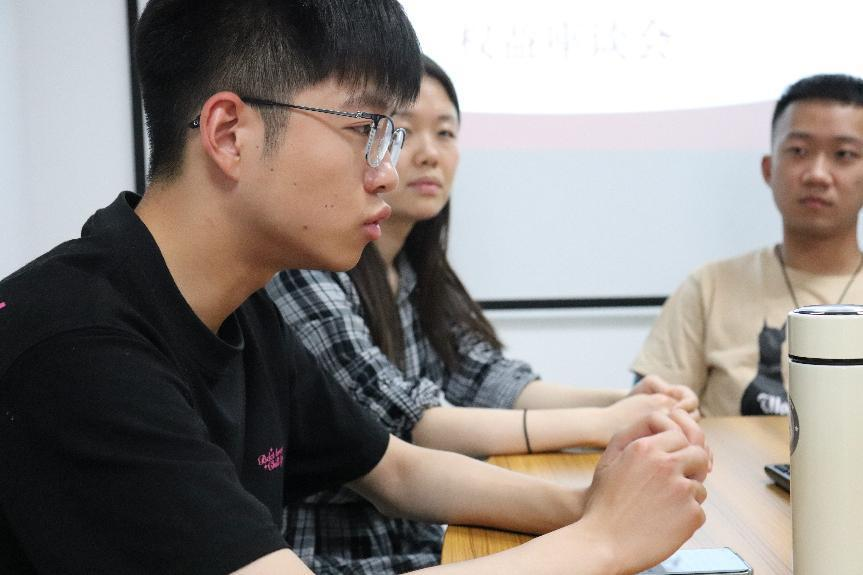 会议伊始,曲怡雪同学介绍了本次座谈会的目的与流程,并指出希望通过这次会议,为同学们提供一个互动交流的机会,听取同学们的心声,为进行后续的权益维护工作打好基础。亓帅华同学就先前所发放的问卷中征集的问题进行总结陈述,她表示,同学们反映的内容涉及到食堂、寝室、后勤、学习、心理等各个方面,诉求众多。