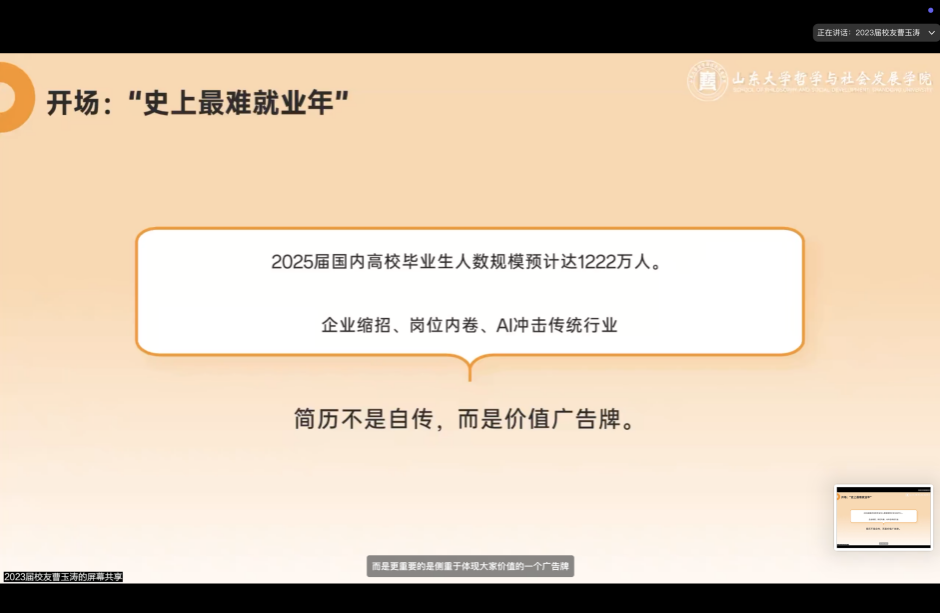 本次简历设计指导与经验分享会为同学们了解当前就业形势和企业需要,提升简历制作与面试等求职技巧提供了充分有效的经验。未来,bet007足球比分 研究生会将继续创新开展“嘤鸣”系列指导讲座,品牌传承做好“我为同学办实事”精品项目,持续优化学院毕业生就业指导与服务,切实提升学院研究生的就业竞争力,助力高质量充分就业。