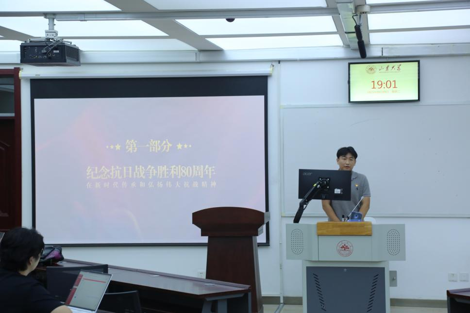 讲座伊始,常张杰依据抗日战争的节点性事件,系统介绍了我国十四年抗战历史。随后,他围绕《人民日报》文章《在新时代传承和弘扬伟大抗战精神》展开分享,阐释了抗战精神的内涵、意义,呼吁党员们深刻领会、主动弘扬伟大抗战精神。他还对学院《研究生党支部工作指导方案》进行了解读,鼓励同学们以党支部建设为己任,以高度的自觉和扎实的行动助力学院基层党建高质量发展。