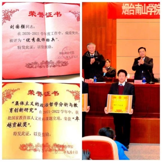 2014年底在原单位退休后,烟台南山学院安排我到到教学部门任教师。我尽管从事不同层次教育多年,但教学一线没有多少实践。到社科部(后来改名马克思主义学院)当教授,同时兼任烟台南山学院督导委员会副主任,每周除了上课,还要督导听课检查其他老师上课情况。授课以来,我历年被评为学校优秀教师,2021年被评为优秀教师标兵,2022年被烟台南山学院授予“十大卓越贡献奖”。2022年12底,在烟台南山学院马克思主义学院的50多名教师业绩考核中,我排名第一。