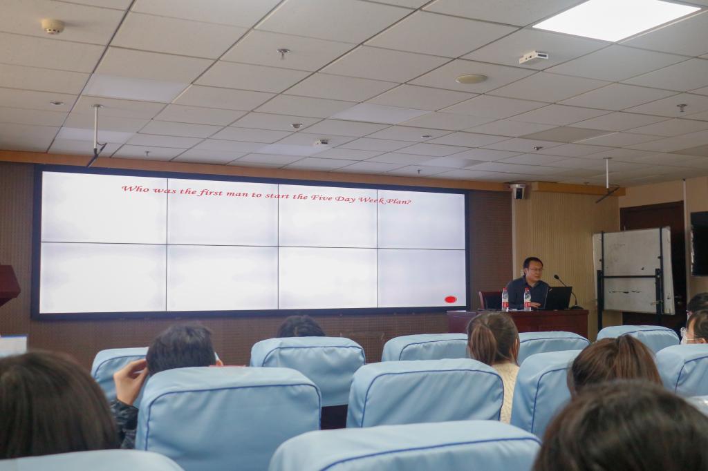本期讲座的主题是《英语文学的魅力与作用》。讲座一开始,郑春光引用了《鲁滨逊漂流记》中的一句话“你应该在星期五前做完所有的工作”,告诫学生安排好自己的空闲时间,充分利用每一分钟。而后,郑春光简单介绍了外国语学院的基本情况,让同学们更深入地了解了外国语学院。接下来,他为学生分享了他关于英语学习的一些看法。郑春光认为,学习英语,世界上没有通用的方法。每个人都是独特的,适用于每个人的方法也各种各样。但在这些方法的背后,本质都是相同的,那就是不断的重复和练习。