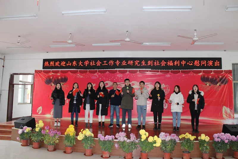 在沂水县实习期间,11位社会工作专业硕士研究生结合当地社会福利中心老人及儿童照护服务的重点工作开展专业实习,学院分管研究生教育的副院长陈坚教授也在周末赶到沂水县社会福利中心进行教学督导。同学们深入敬老院、老年公寓、儿童福利院等进行实地考察探索,调研县域社会工作人才培养和专业机构设置情况,了解社工在为老服务实践中所发挥的作用;还在福利中心开展《社工价值理念在集中供养老人照护中的应用》专题培训,讲解和分享了护理人员在一线服务过程中的技巧和自我解压方式,并现场教授手指操。培训深入浅出,生动有趣,得到护理人员的一致好评,奠定了社工与养老机构对口合作的良好开局。在随后与福利中心的联欢会上,大家准备了喜闻乐见的三句半与合唱串烧,展现了新时代大学生的青春活力和激情;节目间隙,还为老人发放了我院捐赠的过冬棉袜及食品,为老人们带去冬日的关怀与温暖。