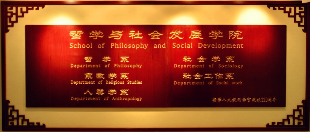成立于1999年,由原哲学系和社会学系合并而成。目前设有哲学和社会学两个一级学科,拥有哲学系、宗教学系、社会学系、社会工作系和人类学系五个系,下设哲学、宗教学、社会学、社会工作、人类学五个本科专业,哲学和社会学两个一级学科硕士点、博士点和博士后流动站,下设马克思主义哲学、中国哲学、外国哲学、科技哲学、宗教学、伦理学、逻辑学、社会学、社会保障、人口学、社会工作、人类学12个二级学科硕士点和博士点。