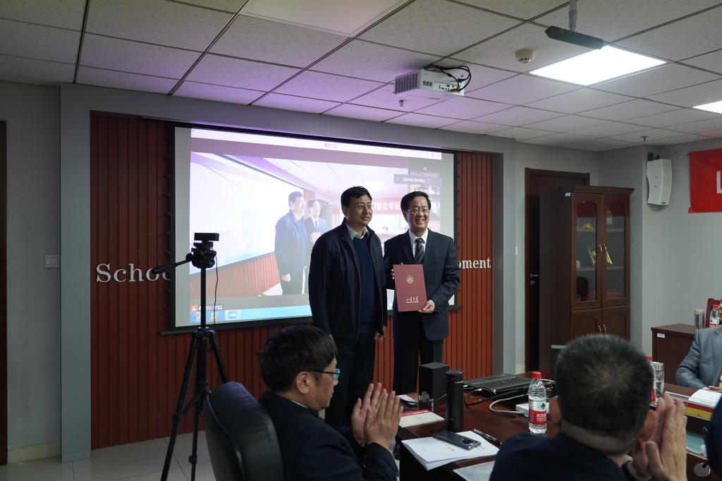 成立仪式上,邢占军、刘森林还分别代表学校、学院,向在现场参会的委员代表杨耕教授颁发了山东大学兼职讲席教授、学院战略咨询委员会委员聘书。
