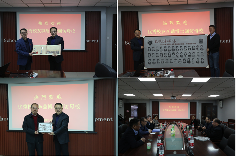 12月7日,山东大学社会学系优秀校友李鼎博士回访母校活动在知新楼A座1618举行,院长刘森林及学院领导班子成员、社会学系教师代表林聚任教授参加了活动,活动由党委书记郑倩主持。