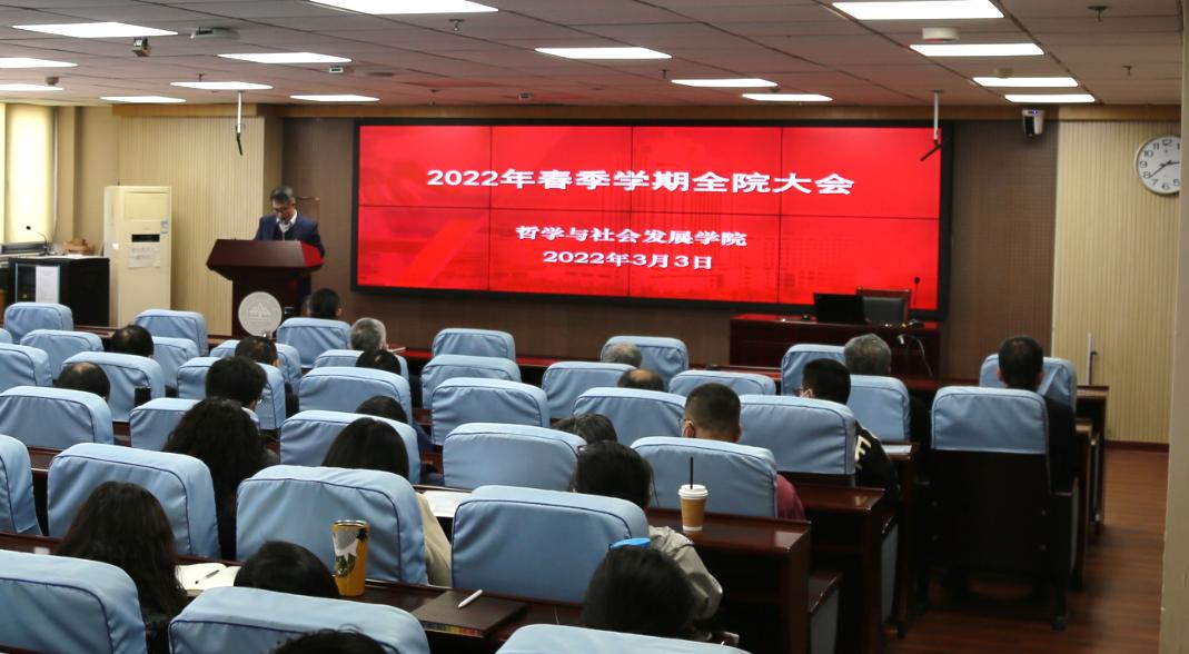 在知新楼A1521召开2022年春季学期工作会议,贯彻落实学校新学期工作会议精神,部署学院新学期重点工作。