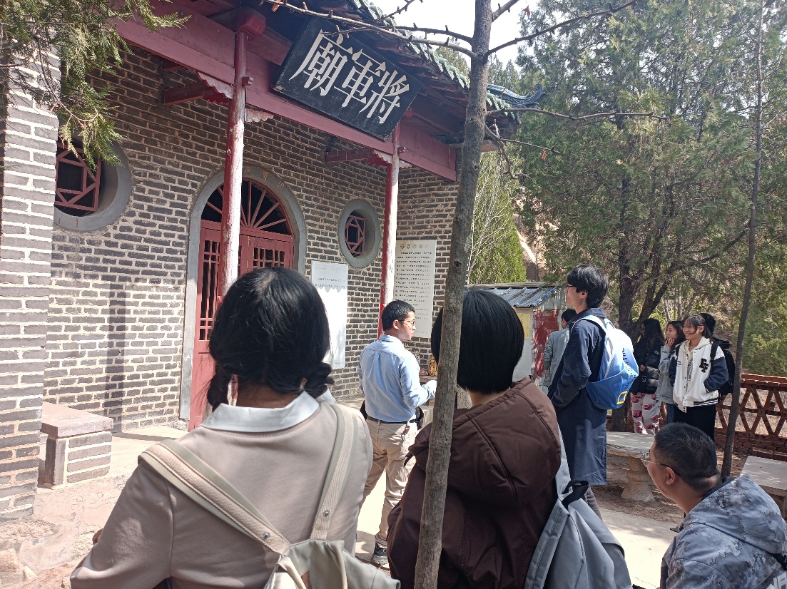伴随着盛开的杏花,师生一行欣赏了黄巢水库、黄巢瀑布等自然景观,感受到了济南春天盎然的生机。在将军庙参观时,王家强老师根据庙中碑刻所载,向同学们介绍了将军庙的历史源流、庙址变迁情况、庙中造像特点等内容,引导同学们发扬学科优势,走进田野,用专业知识观察和分析身边的民间信仰,为同学们打开了一扇了解济南地区民间特色的“新窗口”。
