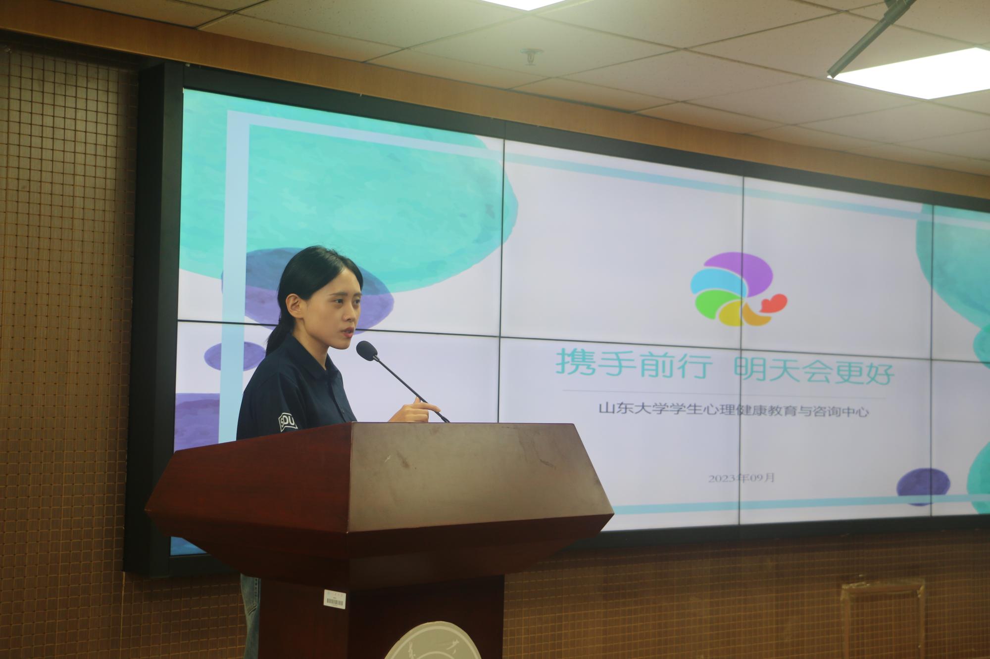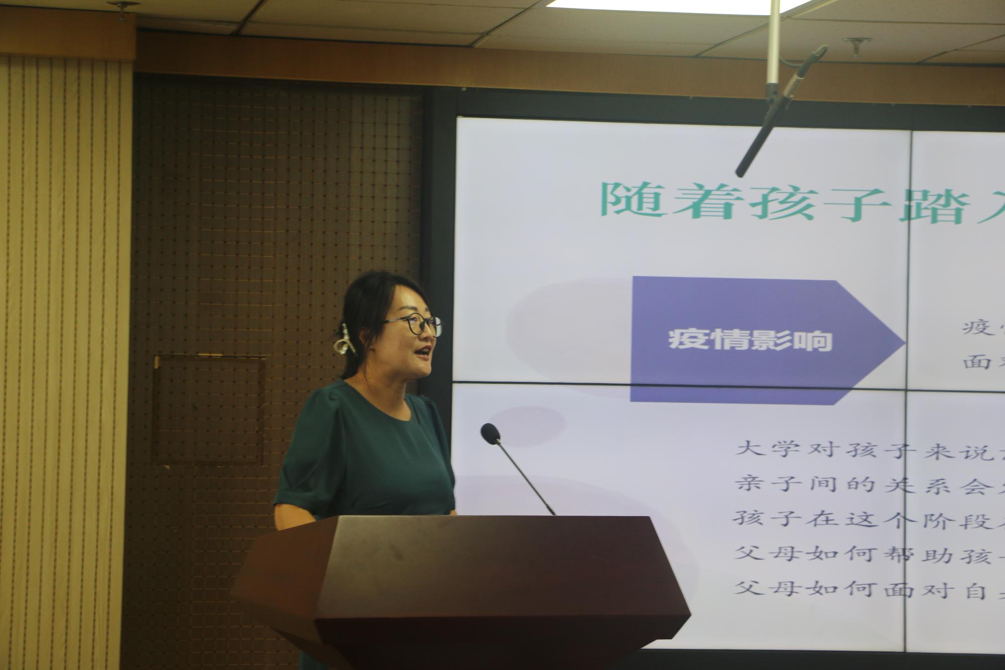 山东大学心理健康教育与咨询中心副主任刘倩倩在会上针对新生家长心理健康教育做了精彩讲座。在讲座中,刘倩倩指出新生在面对疫情影响以及大学适应期等方面情况下可能出现的一系列问题,引导家长在孩子离开家庭后正确认识和塑造健康的心理状态,同时还并强调了亲子沟通和家校合作的重要性。