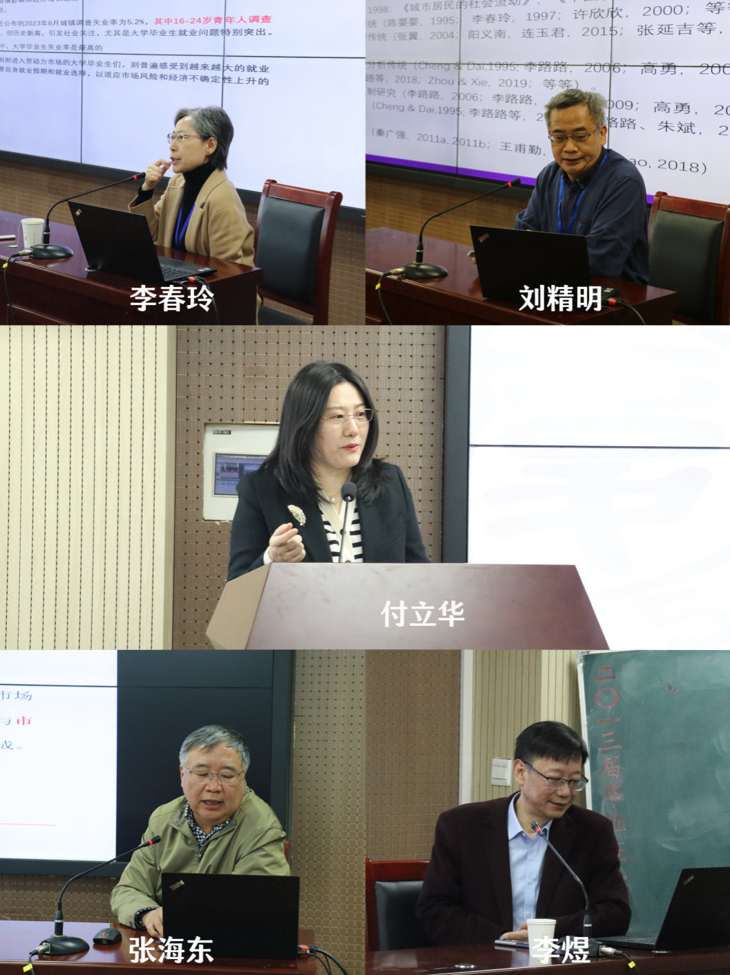 副院长付立华教授主持。清华大学刘精明教授基于马克思社会分工理论建构社会分层框架,通过分析 10个出生世代的代际流动,发现中国式现代化进程中的代际流动同时呈现代际更替与优势转化两种基本面像。上海大学张海东教授通过体制分割与市场分割两大劳动力市场分化机制,构建起符合我国当前城市劳动力市场的双重二元理论模型,并从实证分析层面检验其经验适用性。中国社会科学院李春玲研究员从教育决策理性选择理论视角,解释大学生就业选择的同构因素和分化因素,研究发现不同出身背景的大学生,在持续增加人力资本投资和追求就业稳定性及规避风险的趋同化理性选择同时,又基于自身家庭背景和资源优劣做出差异化的就业决策,从而进一步加剧了劳动力市场的社会分化后果。复旦大学李煜教授从特征与城乡差异入手,探讨中国女性的代际流动,研究发现中国女性以向上流动为主,农村女性是中国女性高比例向上流动的主要成因;教育获得在女性代际流动过程的意义存在城乡差异;21世纪后女性的向上流动率逐渐开始高于男性,且城镇女性相比农村女性更加固化。