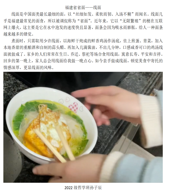 2022级本科生吴凤琪表示:“文化是流动的活水,同样,年味儿自然也是变动不居,常过常新。以本次活动为契机,我尝试用镜头语言去捕捉万家灯火里的年味儿,描绘寻常人家的新春愿景。细节或许各不相同,但人们对美好生活的期许向我传递着:人在,心在,爱就在,幸福就在。”