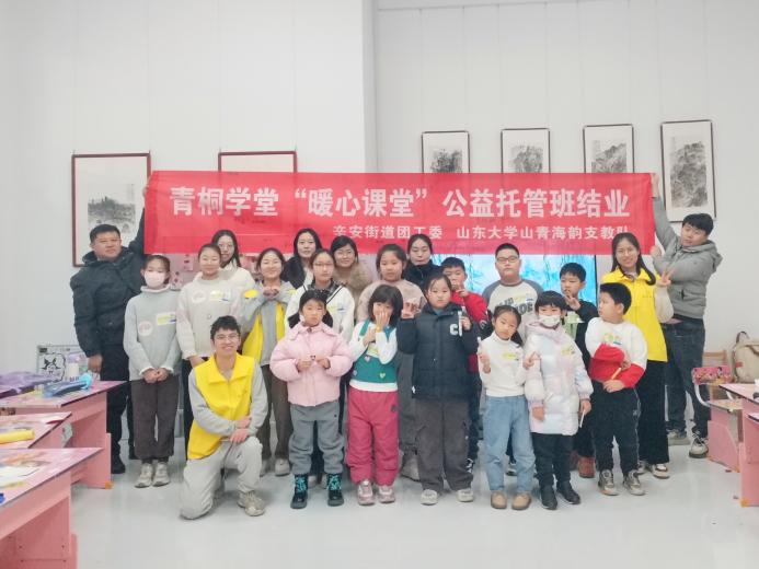 调研先行,守护童心,提升专业能力。1月22日—2月1日,“山青海韵”支教调研队走进青岛西海岸新区辛安街道,为十个社区的新市民子女提供“暖心课堂”——寒假托管及公益课堂服务。创建社区托管中心、设立儿童资料库等方向充分展现了社会工作专业的实践优势,体现了专业理论层面的深厚底蕴,同学们踊跃实践提升专业能力的同时,更为社会提供了更加精准有效的服务,切实肩负起新时代社科青年使命担当。