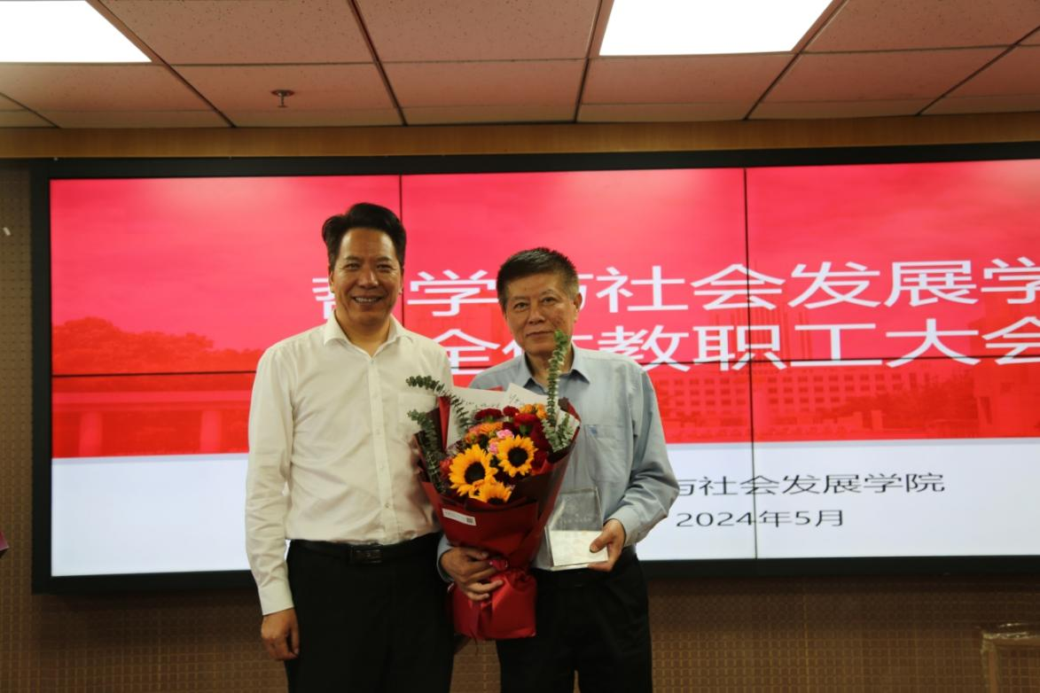 会议举行了新聘教师入职仪式。在热烈的掌声中,曹现强为新聘的讲席教授张志刚、助理研究员李瑶玥颁发了入职名牌,两位教师分别发表了情真意切的入职感言。名牌呈一本书的形状,上面不仅刻有老师本人的名字,还镌刻着“爱智乐群 辉光日新”八个大字,既体现了学院学科特点,更承载着学院的殷切期望与美好祝愿。