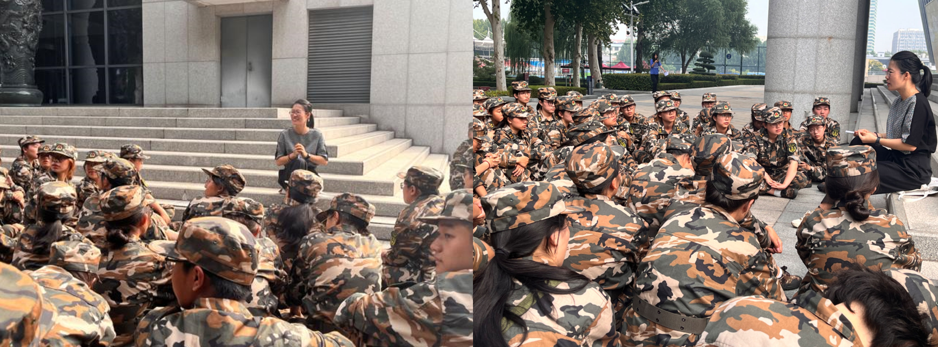 党委副书记翁祥栋在知新楼前主持召开新生学涯成长分享会,学院2024级本科新生参会。
