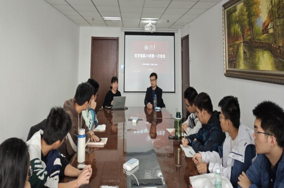 在哲学强基班见面会上,班主任陈佩辉结合自身经历,强调了掌握外语、广读原典以及背诵经典的重要性,并鼓励学生广泛阅读,探索学业与个人兴趣的结合点,保持求知欲和好奇心。