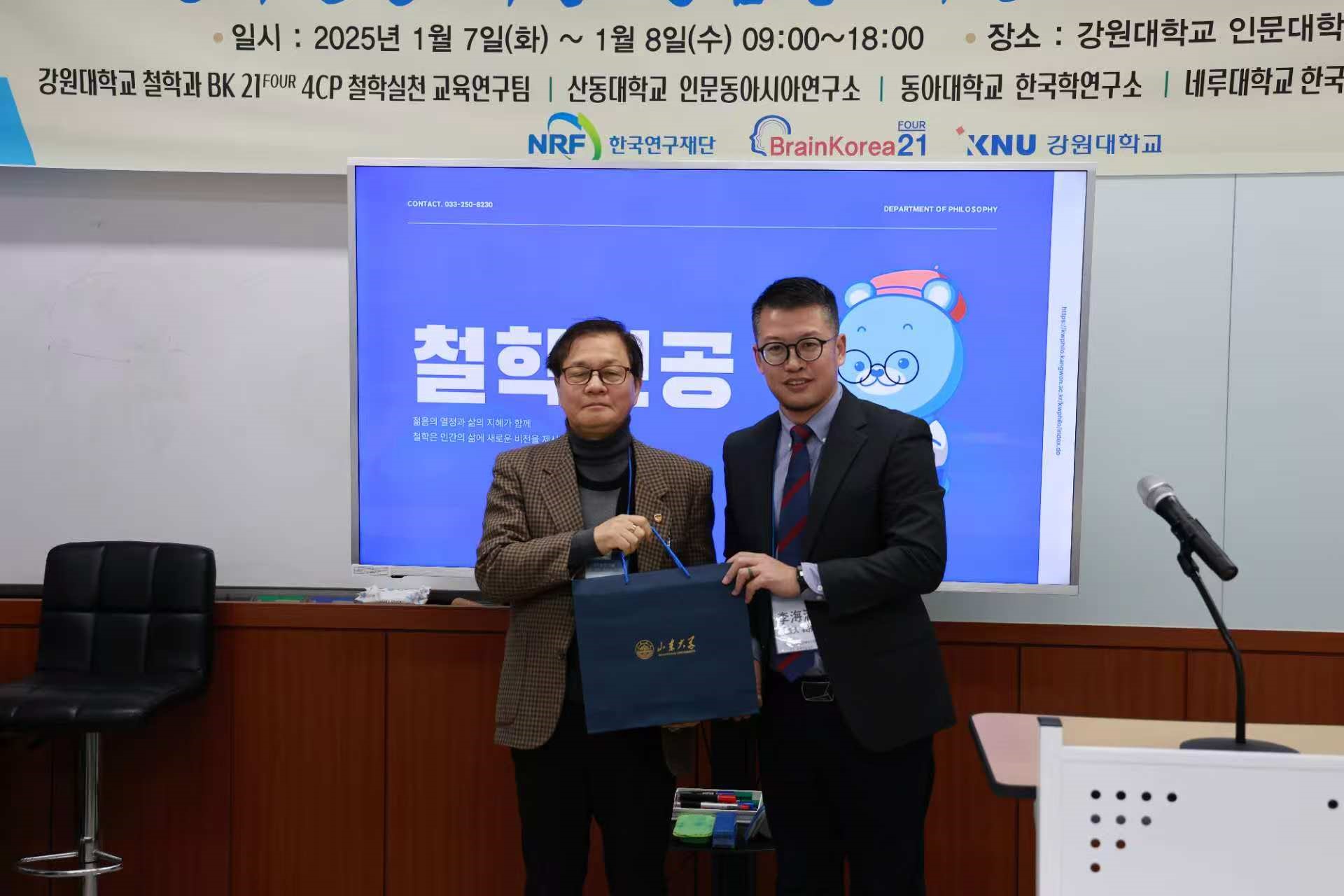 会议开幕式上,江原大学哲学系金熙教授对山东大学师生的来访表示热烈欢迎,并强调了江原大学哲学系BK21 Four 4CP事业团组对哲学实践的理解,点明了本次会议的主题立意。李海涛副教授代表bet007足球比分(中国)官方网站