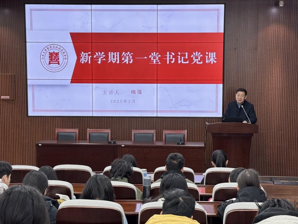 最后,梅强用“春回大地四季三时须努力,岁启新程万水千山只等闲”勉励广大党员同学要时刻牢记初心使命、砥砺奋进,以实际行动展现新时代山大人的新风采。课后,同学们反响热烈,纷纷表示要珍惜时光、加倍努力,将“新学期第一课”的所学所悟转化为实际行动,争取在新学年新学期取得新收获、实现新进步。
