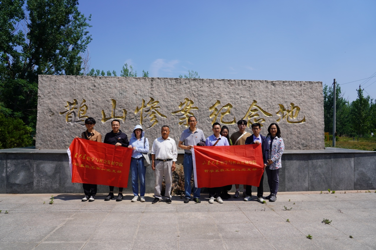 教工第一党支部与第二党支部于2025年5月24日联合开展了“铭记历史,砥砺初心”主题党日活动。支部成员赴王士栋烈士纪念地、鹊山惨案遗址及周边红色教育基地进行实地学习,并围绕“哲学视角下的历史反思”展开专题座谈,将红色教育、优秀传统文化与学科专业特色深度融合,切实推进思想政治工作的深化与落实。