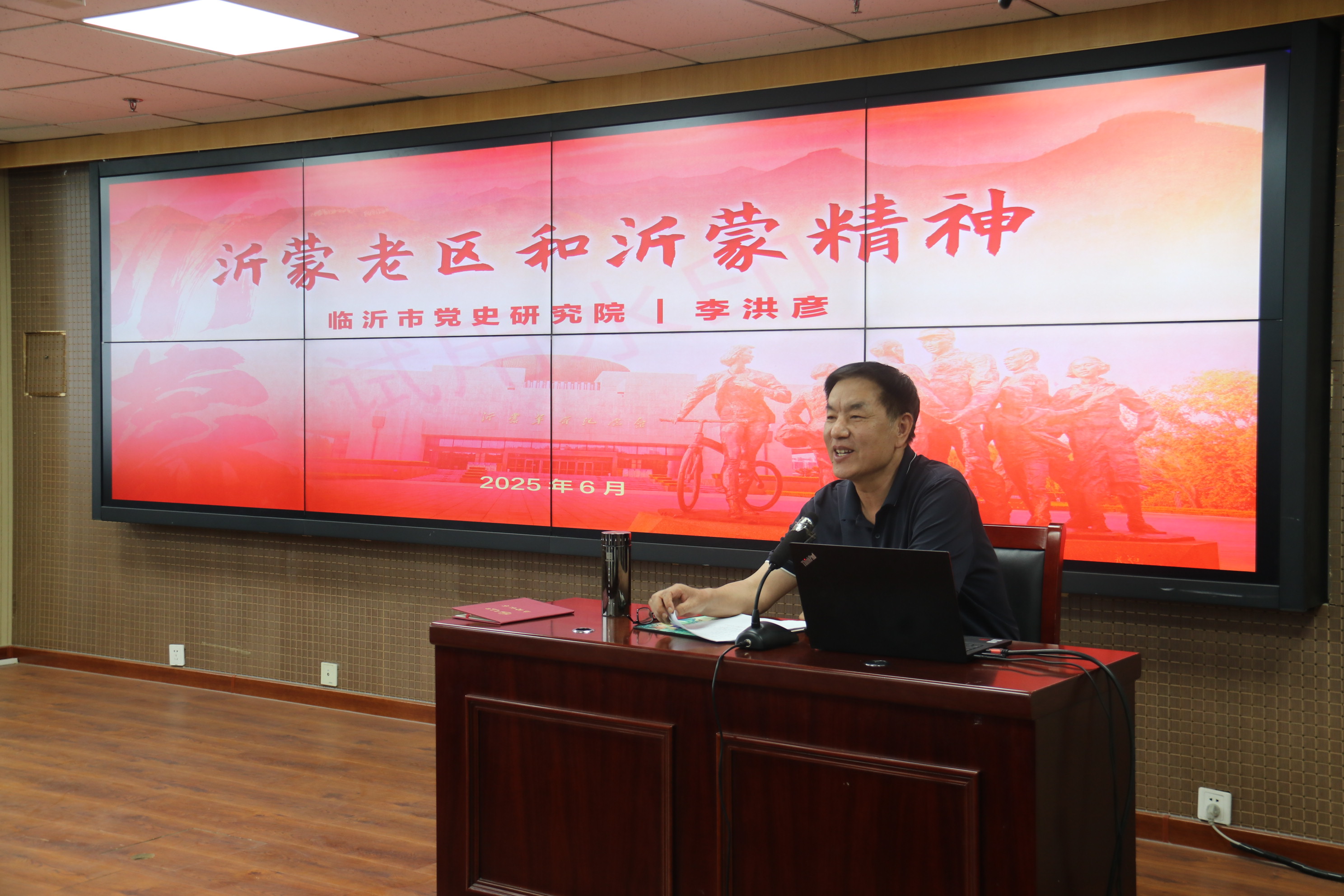 随后,李洪彦作了题为“沂蒙老区和沂蒙精神”的报告。报告从“沂蒙革命根据地为什么能”“山东大学校史上为什么会有临沂山东大学”“沂蒙精神为什么行”这三个问题出发,通过回顾革命战争年代沂蒙老区军民水乳交融、生死与共的光辉历史,系统阐释了沂蒙精神“党群同心、军民情深、水乳交融、生死与共”的核心要义,并依托详实史料与生动案例讲解了沂蒙精神的形成背景和丰富内涵。李洪彦深刻剖析了沂蒙精神的历史地位及其跨越时空的珍贵价值,强调了在新时代新征程上,沂蒙精神对于坚定理想信念、凝聚奋斗力量、推进强国建设和民族复兴伟业的重要意义。