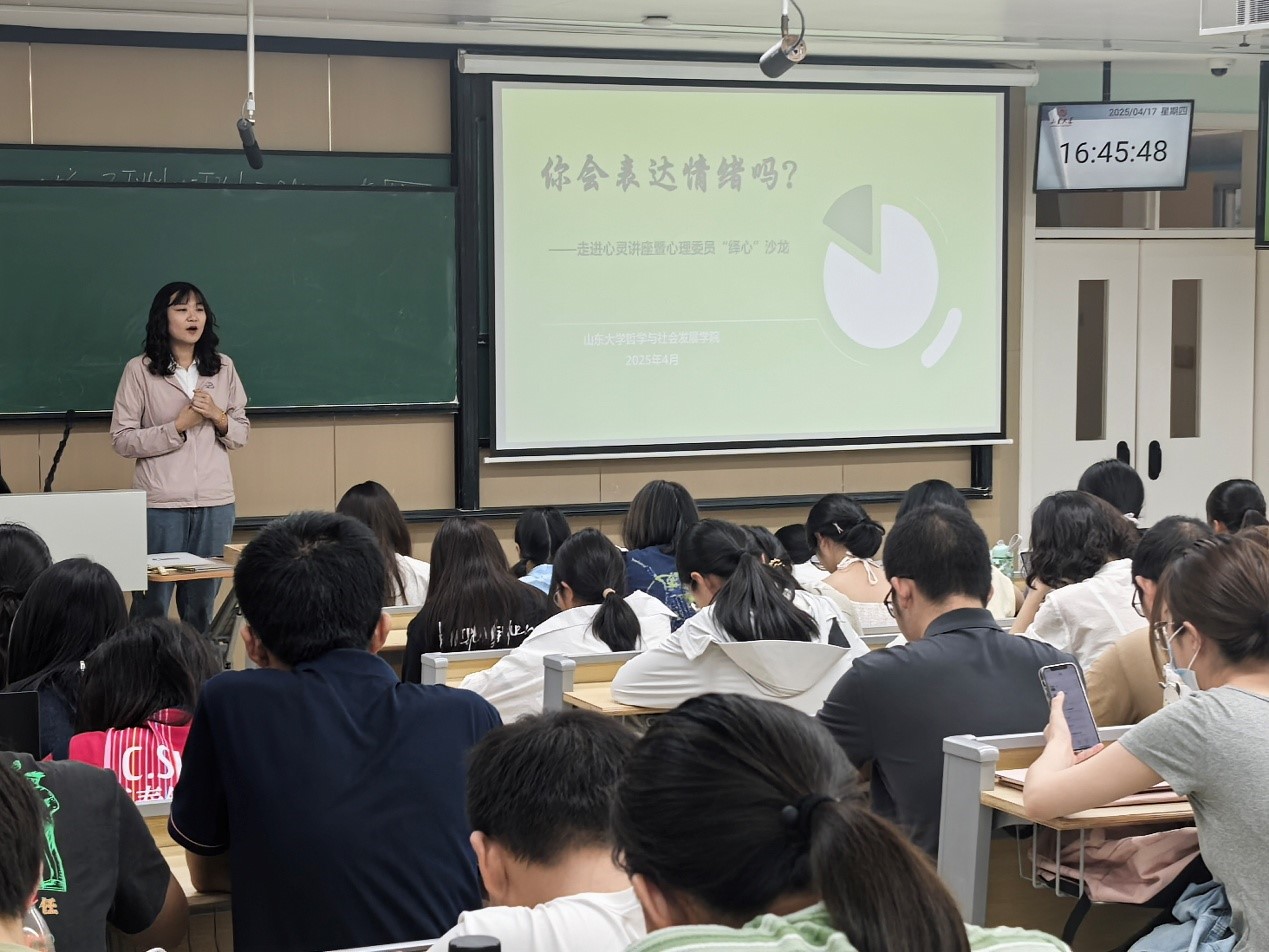 讲座伊始,班梦姣以“你会表达情绪吗?”为主题,结合生活中常见的事例,向同学们深入浅出地讲解情绪的概念、分类以及情绪对学习和生活的影响,引导同学们正视自身情绪变化。