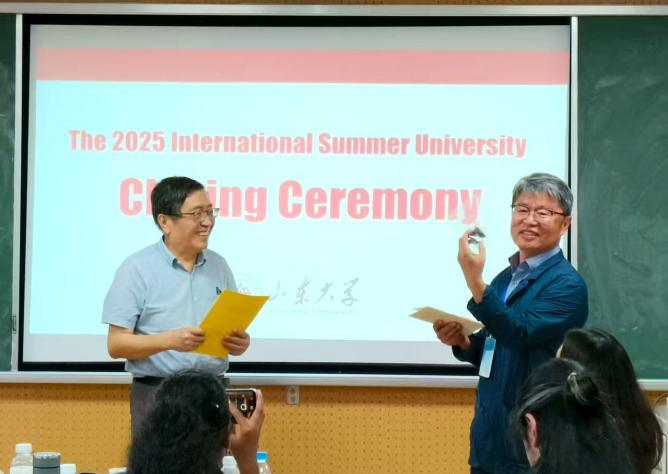 2025年社会工作国际暑期学校闭幕仪式在知新楼A1421教室举行。来自美国、加拿大、瑞士、以色列、印度、蒙古、澳大利亚、中国香港和山东等九所高校的40余名师生齐聚一堂,共同见证这段跨国学术旅程的收官时刻。