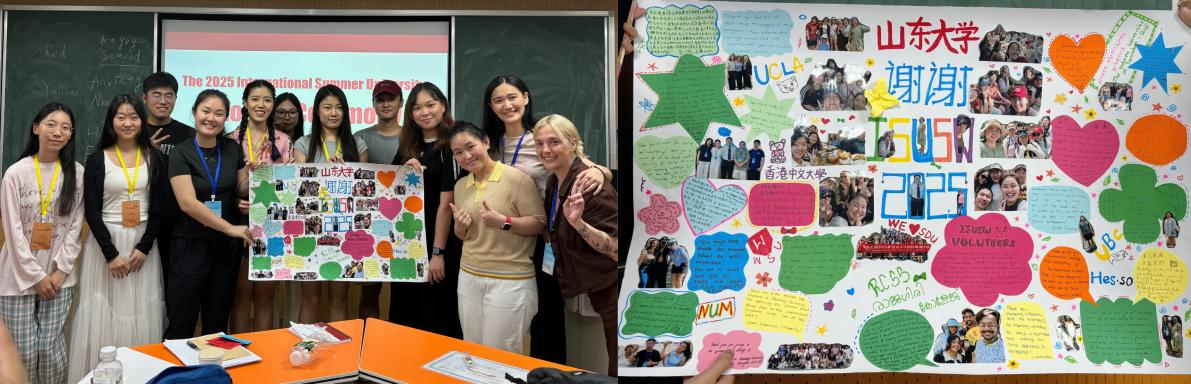 随后,三位教授共同为学员们颁发结业证书和优秀学员证书。优秀学员代表、来自西悉尼大学的Katherine Annabel Mitchell发表了结业感受。她首先感谢暑期学校提供的建立联系与合作的机会,使大家全身心地分享和讨论全球范围内社会工作遇到的问题,希望大家在之后的学习和工作中继续进行批判性的思考。最后,学员们将亲手制作的剪贴海报送给山东大学的志愿者们,以表达对他们辛勤付出的感谢之情。